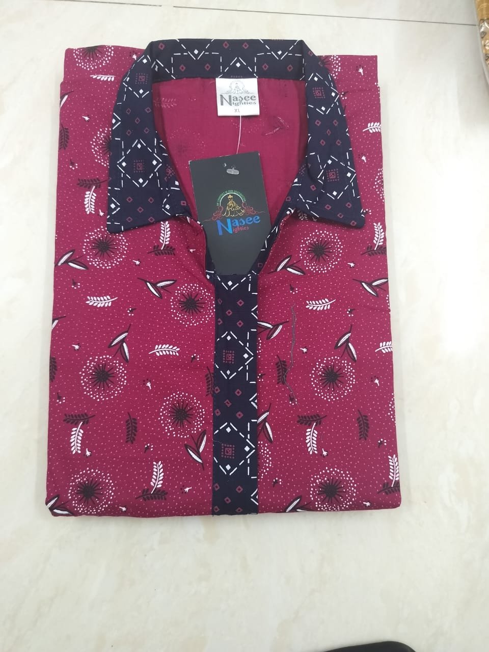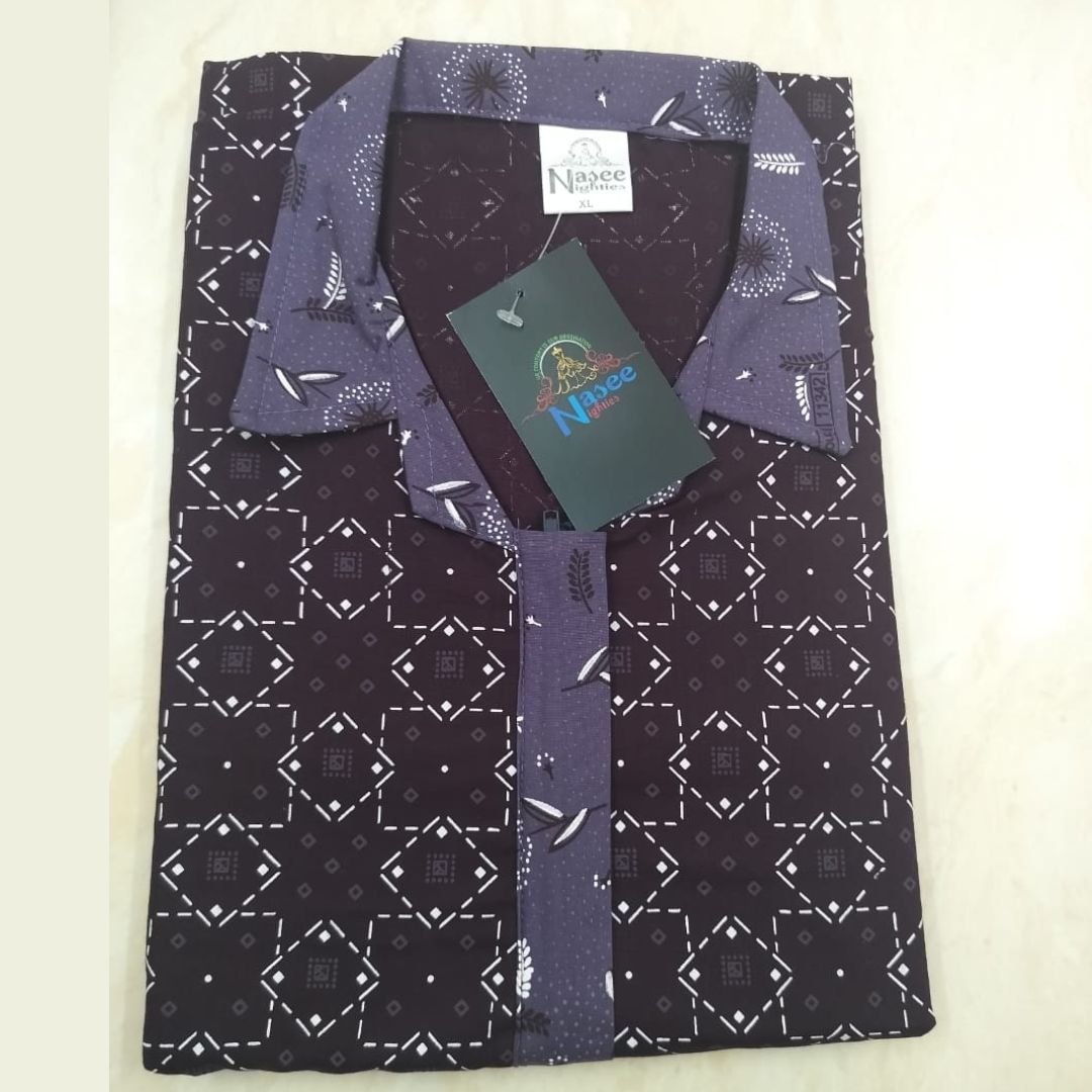 Upgrade your nightwear with our Collar Neck Nighty, a perfect blend of comfort and style. Featuring a classic collar design, this nighty offers a sophisticated look while providing a cozy and relaxed fit. Crafted from high-quality, breathable fabric, it keeps you cool and comfortable throughout the night. The button-down front adds convenience, making it easy to wear. Whether you’re lounging at home or getting ready for bed, this nighty is the ideal choice for effortless elegance. Available in various colors and sizes to suit your preference.