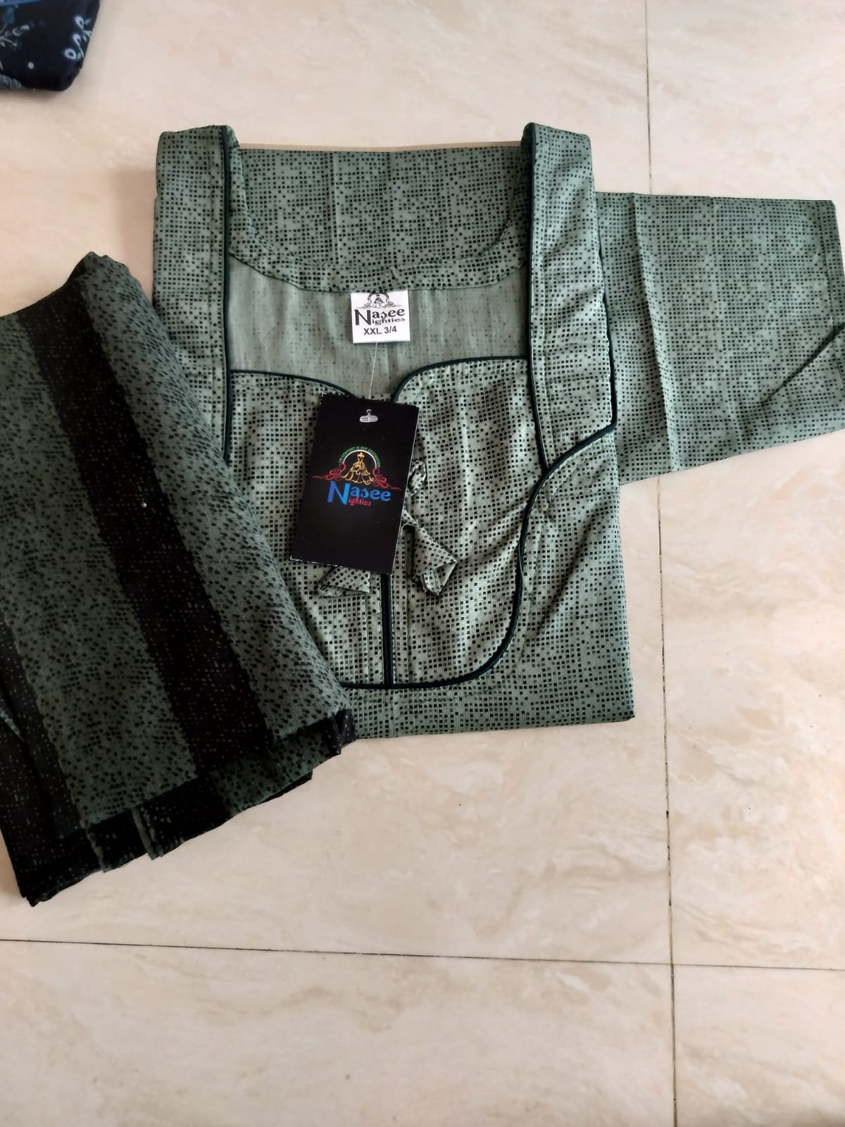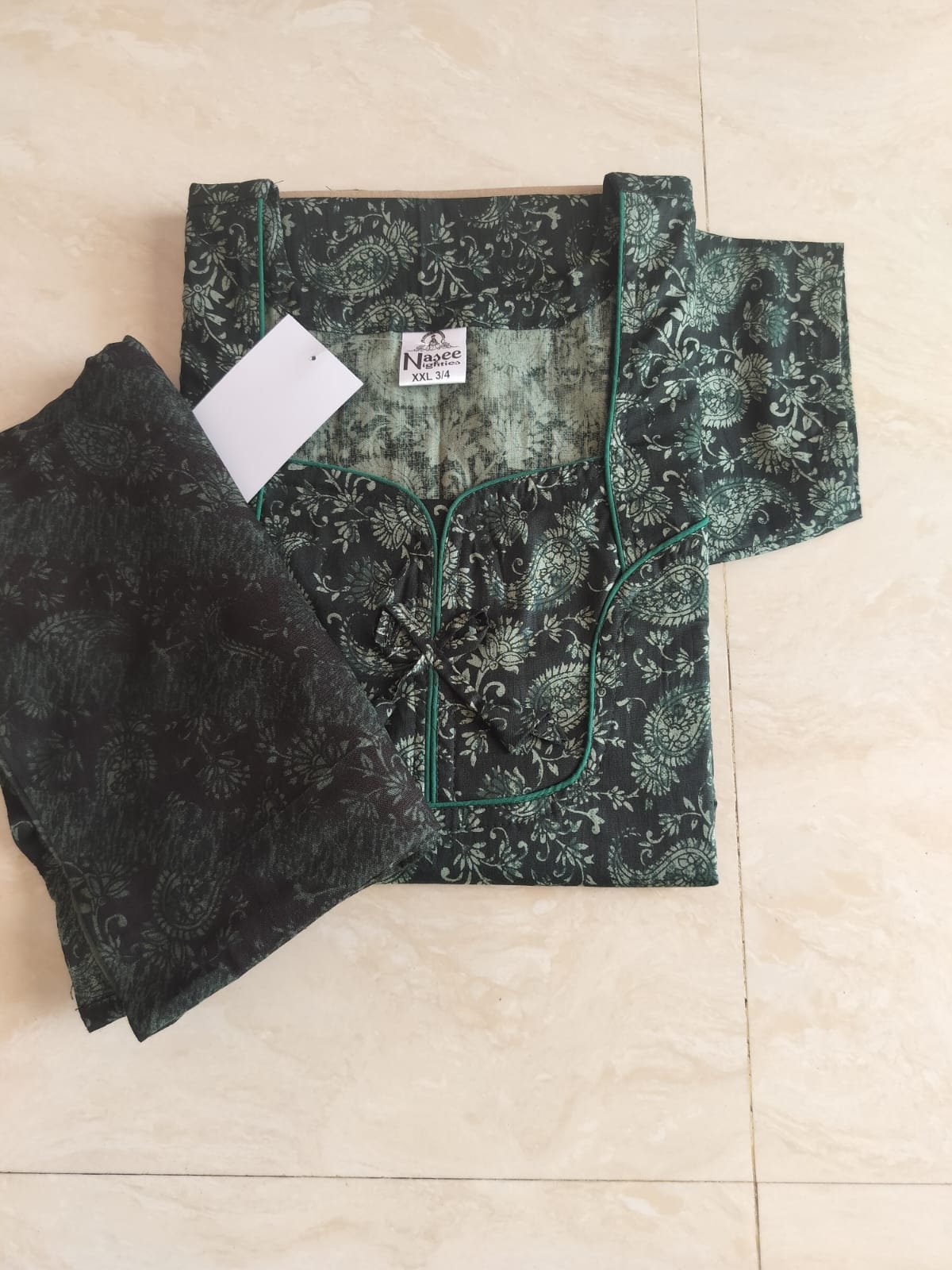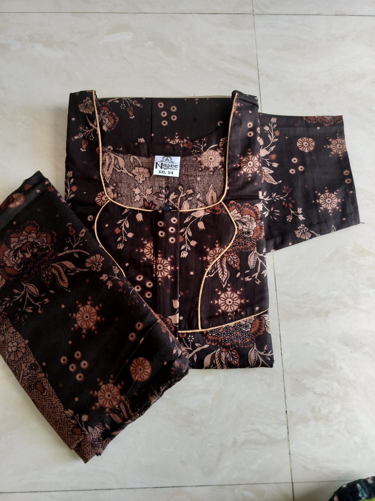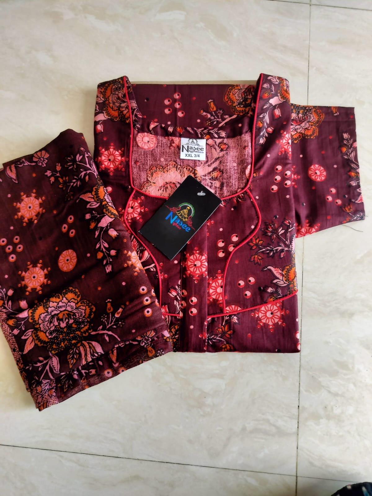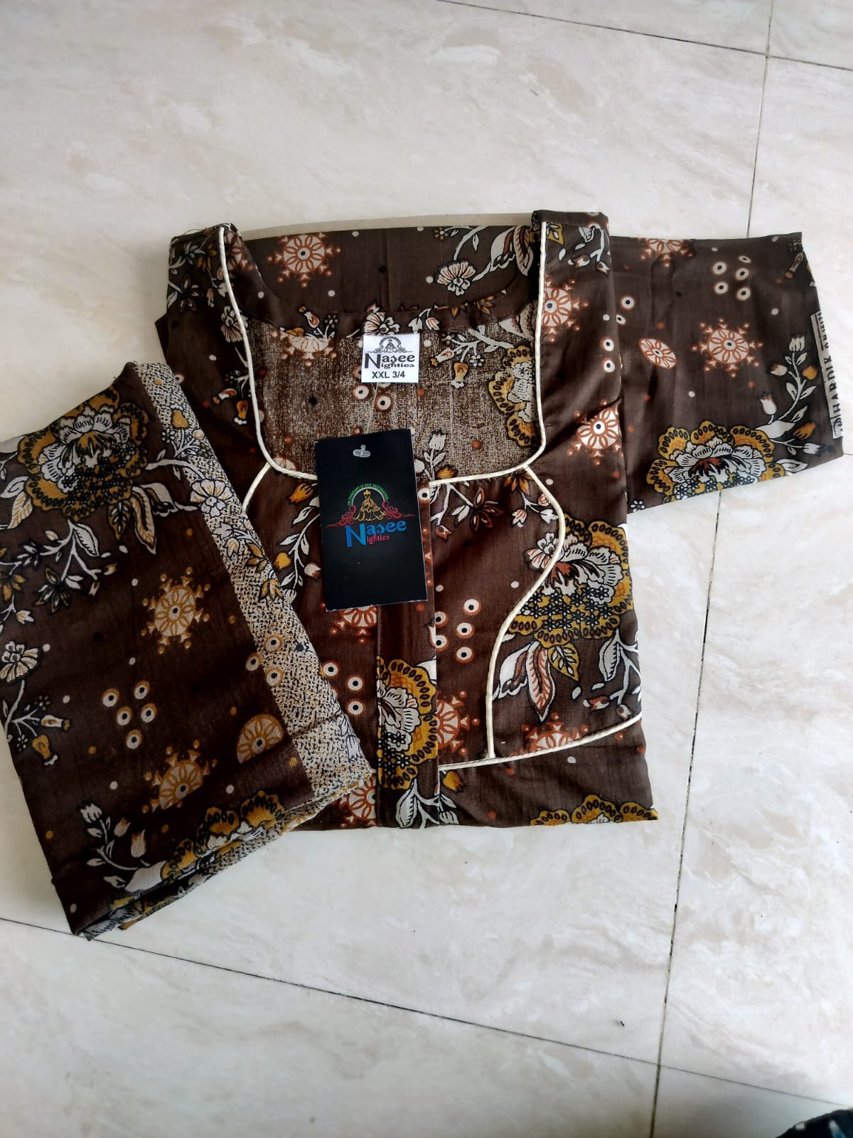 This 3/4 sleeve nighty with a matching dupatta offers a perfect blend of comfort and traditional elegance. Crafted from soft, breathable fabric, it drapes gently for a relaxed and airy feel. The 3/4 sleeves add ease and flexibility, while the dupatta gives it a modest, graceful finish. Ideal for women who prefer stylish yet comfortable nightwear for everyday use.